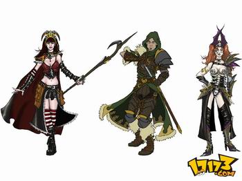 从左到右依次为:女性人类法师、男性人类游侠、女性人类巫师