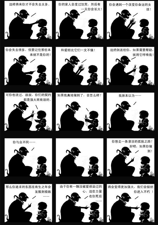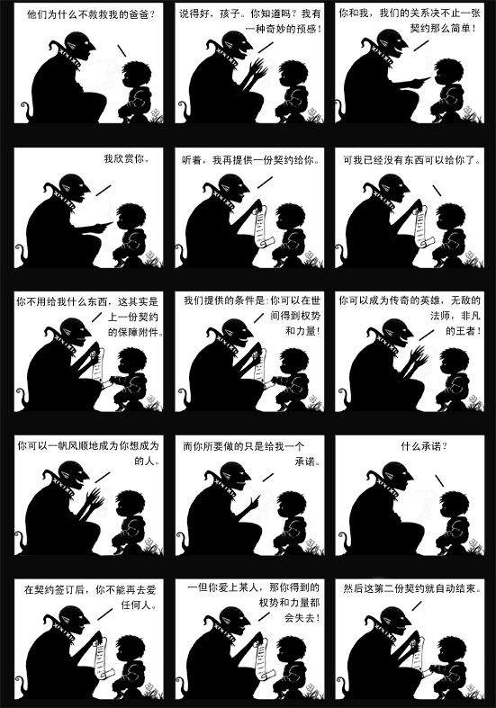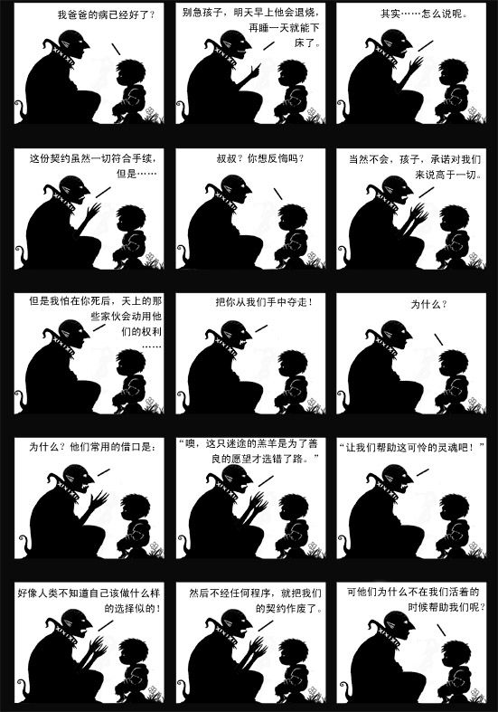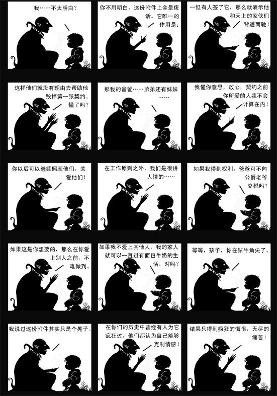 幼童为了让改善自己家人的生活不惜牺牲自己。。。利用契约的漏洞成全了自己家人的幸福生活,同时自己也成为了深渊领主。。但是我在想儿童的家人要知道年幼的孩子为他们家族牺牲了自己。。他们在满足物质条件的基础下是否会真正快乐呢。。。