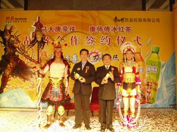 5月31日下午14点,在玩家的万般期待下,在各界嘉宾和百家媒体的见证下,“网易《大唐豪侠》公测新闻发布会暨与康师傅冰红茶、冰绿茶联盟战略合作签约仪式”在北京香格里拉大酒店成功举办。