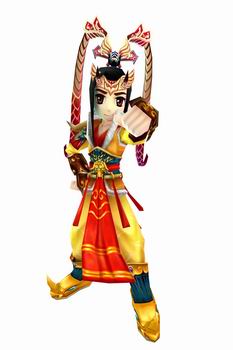典韦的矫勇气善战给《热血江湖》的设计师们触发了灵感,狂歌战天甲以典韦刚猛的形象并结合古代金刚神灵为灵感来源,一身黄缎轻装短打,腰间束一红色蛮带,将穿着者的健美身材尽显无余!上身着白虎胸氅,双肩镶蛮牛战角,让穿着者更加威风凛凛气势逼人! 足蹬牛头战靴,大有万夫莫当之势!