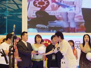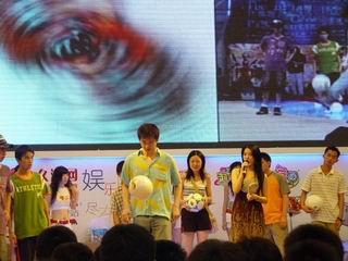上午,十点多,《劲爆足球》中韩双方公司高层韩国SonicAnt公司CEO张尚钰先生(changsango)及久游网营销中心总监吴军先生出席了封测开启仪式,主持人献上了两枚印有《劲爆足球》标志并作为本次封测信物的真皮足球,双方在足球上签名并交换留做纪念。