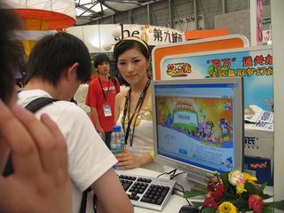作为较早进行自主研发,并始终坚持走中国文化背景内涵的游戏公司,,网易《梦幻西游》在今年第一季度创造了131万在线的网游奇迹,成为其他游戏难以企及的巅峰。最近正式收费运营的《大唐豪侠》一推出就受到玩家热烈追捧,2006重金打造的全3D网游《天下贰》一面世就引起不小轰动。无疑,网易凭借精彩的策划、布置,成为本次ChinaJoy大会的焦点。