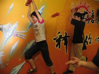在网易展台,不管从现场的抢眼海报、展台的游戏场景化布置,还是惟妙惟肖的COSPLAY,都把人带入立体游戏的奇幻空间中。梦幻百万通关区域活动区内,《梦幻西游》玩家在通过在线pc进行百万闯关的活动;而大唐豪侠“轻功”大赛体验区内,勇于冒险的玩家似乎不满足游戏中的侠义体验,纷纷尝试在现场的攀岩墙上一显身手,游戏中的拼搏的精神被他们现场演绎得淋漓尽致。