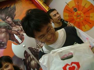 在29日的抽奖中,一位非常幸运的男性玩家获得了重头彩。图为该玩家兴奋异常的上台领取奖品。