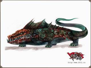 一般认为,龙要么在空中飞,要么在海中游。此龙却个性十足,不沾水,爱在陆地行动且奔跑如飞。你可要小心,这个外表看起来像条鳄鱼家伙可是野性十足。