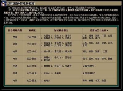 首批游戏大区、服务器名称及服务器推荐表