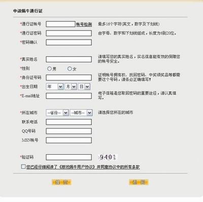 第二步:进入游戏蜗牛的会员中心之后,您可以在此注册及登录您的通行证帐号。点选左侧的“申请通行证”选项,进入申请页面。请按照要求进行仔细填写,并注意查看下方选项中的《游戏蜗牛用户协议》。如您已经是游戏蜗牛用户,请跳至第四步。