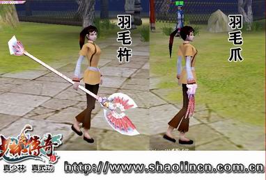 极品武器,无疑会给各位玩家在游戏中如虎添翼,打怪练级必会事半功倍,轻松打下属于自己的一片天地。我们为大家准备一系列“羽毛系列”武器正是为了报答大家对少林的支持!高手云集的少林中,最强的武器正期待最顶尖的高手一同舞动斩除妖孽的大旗!