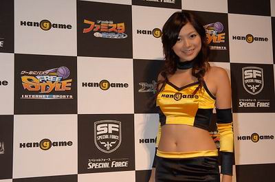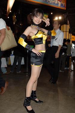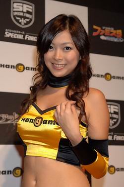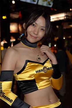 本届TGS有数家韩国公司参展。 以下Show Girl就是来自NHN Japan展台。著名的韩国NHN公司对中国玩家来说也不陌生了,这是一家集网游开发、运营于一体的韩国网游巨头,盛大当前的主打网游《霸王》(专区 新闻 下载 搜索)就是NHN旗下产品。