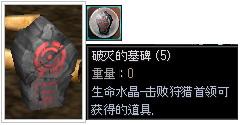 ◆通过狩猎四十级以上狩猎BOSS,玩家有几率获得兑换一般狩猎头箍所需的道具:“破灭的墓碑”(生命水晶的一种)。