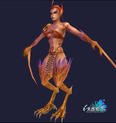 长着鹰的翅膀,女人的身体。两只脚是呈鹰腿。头部背面有彩色的羽毛,嘴是鹰嘴,眼睛旁边有一簇绒毛。