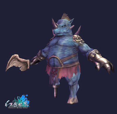 比较矮,头比较类似犀牛,鼻子的上端有1-2个翘起的角。胖墩墩的,手中握有短柄武器。直立行走,但是他的一只脚是假腿。