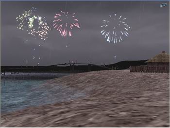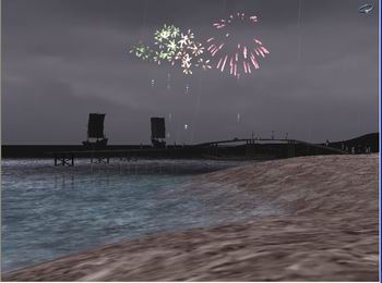 在活动中很多玩家兴奋不以,为了庆祝这美好的时刻,大家共同跑到码头燃放烟火。