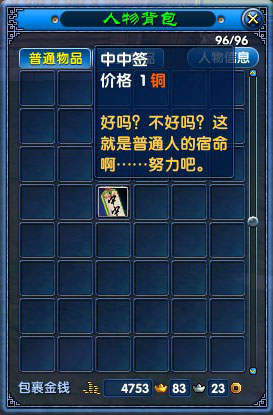 很多玩家已经从“张半仙”那里拿到了各种各样的签,有的是“上上签”,还有的是“下下签”,望着这些签,也许有人莫名其妙——也不能够吃,也不能够精炼,到底用来干吗呢?