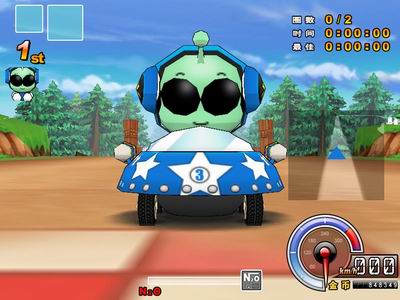 北奥行星的外星人奇奇,在乘坐飞碟在宇宙旅行途中,发现了繁荣山丘村的车手们正在举办有趣的卡丁车比赛,只见他兴致勃勃地飞过去并且自己也要参加,但是因为卡丁车有必须要在陆地上行驶的规定,所以他没能参加比赛。