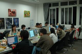 一进入光通《神泣》中国运营团队的工作间,第一印象就是繁忙,每个人都热火朝天地忙碌着,市场人员来回奔忙,进行首日公测线上活动的最后一次确认,技术部门则在进行最后的服务器压力测试和进行最终清档的工作。