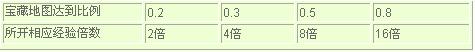 在活动时间内,管理员将观察每个区宝藏地图开启的红火走势,如果该区开的宝藏地图达到不同比例,将会获得相应倍数的经验!越是金碧堂皇,经验越是红火哟!