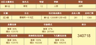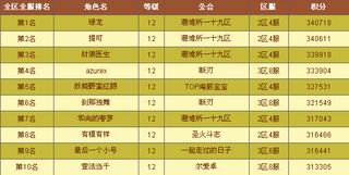 昨天(12月13日)24:00,艾伯伦竞技排行榜再一次刷新,局面出现了极具戏剧性的逆转:连日来一直雄居榜首的牧师 提可 被同为二区四服 避难所一十九区 公会的“自家兄弟”绿龙打败,以107分之差落入第二。而身为法师的 绿龙 以340718的高分摘下周冠军头衔!