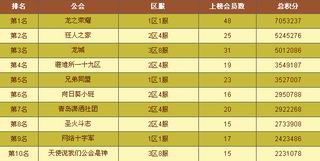 ·本周艾伯伦竞技排行榜公会排名前十名单