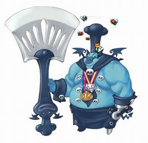 弯腰驼背,身上穿着厨师服,手持菜刀、平底锅的神秘恶魔总厨,这个怪人一点都不像是能烹饪出美味的大厨。小天使要格外小心,否则你可能就成了他的美味佳肴咯~比起这个总厨,暴食小天使要可爱的多。难怪,原来他曾是失去踪影的小天使,再次出现的身份居然是恶魔大军的前卒;神情涣散的他们只剩下贪婪找寻食物的本能在主导身体行动。