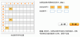 并且根据系统随机给的三个坐标,正确填入矩阵内对应位置处的数字后,完成帐号和密保卡的绑定。