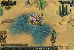 这里就是烈焰崖中一处僻静的所在,在这个黄沙漫漫的地方,这一弯碧蓝清澈的湖水着实让人心旷神怡。