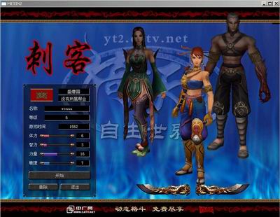 游戏有4个可选职业,分别为修罗,猛将,刺客,神女,从名字就可以大致看出职业定位了。职业默认性别不可改变,前2者为男性,后2者为女性,人物的基本属性点,外表,默认性别均没有选项可以提供更改,幸好游戏里提供染发剂可以更换头发颜色,不然就太单调了。创建人物时需要选择所在国家(盛唐国,秦皇国,汉武国),这是为了以后的大规模国战作的铺垫,需要注意的一点是,头一个角色以后创建的人物都会默认加入第1个角色加入的国家,所以玩家在第1次创建角色时要考虑好加入哪国,在此以后不可更改国家。