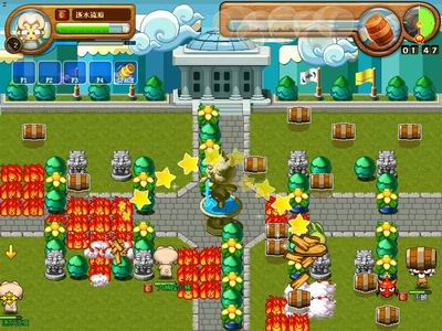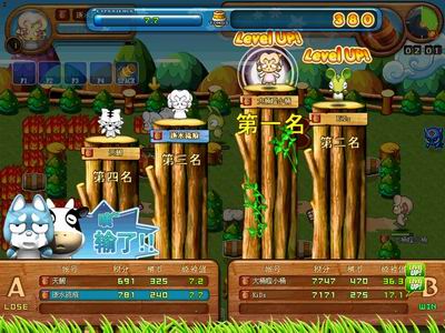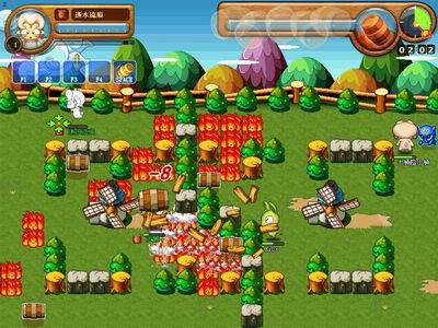 游戏虽然是以十二生肖为主要题材,但是毕竟是一款休闲游戏,所以在风格上就比较Q版可爱且不乏幽默诙谐。游戏的对抗地图和《泡泡堂》的房间相似,采用的角色视角也一样,矮矮的树或者树桩构成了地图上一处处的障碍,而如同象棋里面的楚河汉界一样,中间完全隔开了双方之间的地盘,玩家所要做的就是利用手中得到的油桶,扔过去击倒对方直至消耗完对方的血值。清新可爱的游戏画面,另类的竞技方法,让人不禁眼前一亮。