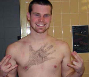 告诉你不要把如来神掌打在我的身上,看看看看,胸口的掌印啥时候能消失撒?后果二:神经错乱