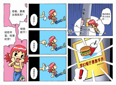 “我要开餐厅,我要开一家装修豪华、美味四溢、每天都赚很多很多钱的餐厅~漂亮的服务员MM热情地为顾客服务,每个人脸上都带着微笑……”
