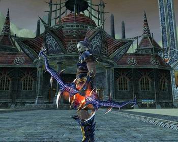 安格洛米斯,传说是接受女神之命的丛林守护者,蛇身人面,长有巨大獠牙,整日出没在丛林之间,因为参与对神发动的战争而遭到毁灭。安格洛米斯临死前,将自己身体一部分被制作成弓,并取名“忏悔”,希望能永远告诫这把武器的使用者。