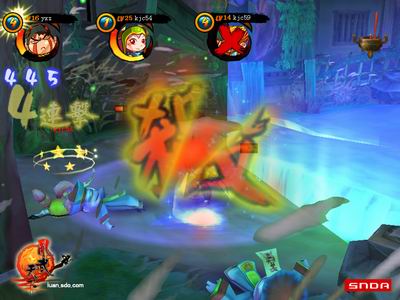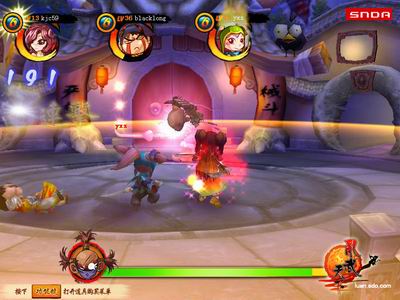 值得一提的就是任务模式了,大家统一阵线一起杀BOSS。对于我这种格斗白痴游戏菜鸟来说,跟在前辈后面摇旗呐喊、狐假虎威一下是最适合的了!琴魔这一关里,虽然只有一个BOSS,可他大手一挥,碰到就死,玩家要从上下左右不断的靠跳跃躲闪的的一双魔爪。无数次我就是因为躲闪不及,香消于此,一声长叹啊!25级以后,就可以进入闯关任务地图啦!这里一共有4个关卡,每过一关才能来到下一关,杀掉无数的小喽罗后BOSS登场,每个BOSS都有自己的必杀绝招。从头到尾只有3条生命!郑重提醒大家一定要珍惜生命,稳抓稳打,戒骄戒躁,不可蛮横专行哦!当然啦,游戏中随时可以蓄命,就和打街机里蓄游戏币一样的,只要你有足够的金币,那就冲吧!