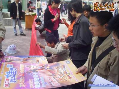 在众多学生询问了活动情况和《武林外传》游戏的问题之后,纷纷表示大力支持我们举办的高校公益活动,为了回报参与活动的同学们,完美时空公司还准备了丰厚的礼品赠送给参与活动的同学,其中我们的Q版喜剧网游《武林外传》的周边和海报人气更是高涨,那些可爱的QQ的人物让大家爱不释手;熟知游戏内容的朋友们更是谈论热烈,引得周围欢笑声不断。