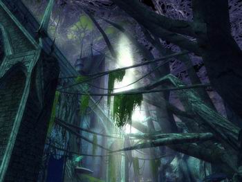 当然,在《激战:盟与敌》中的科瓦德森林的形成原因和石林的形成原理完全不同,但最终形成的整体效果还是非常接近的。利用现实中的元素来创造游戏中的虚拟世界,这是激战(GW)的游戏设计者们经常采用的一种办法。也正是通过这种办法,使得激战(GW)的世界既能做到源于现实,给人一定的真实感,又能超越现实,成为一个充满了幻想主义的世界。由此可见,这样的设计方法还是非常成功的。