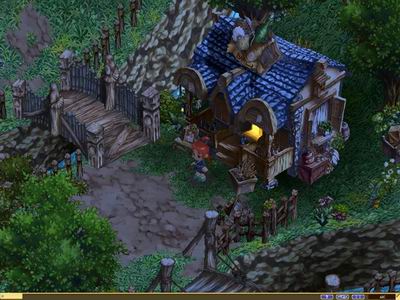 法兰城内其他的房屋也很有看头,每个屋子都有自己的特色,屋顶的颜色、门窗的样式、周围的布局,不在是一个图型代表一片,而是张张精心设计。这些也都集中到了西区中。木材店、矿石店、魔法店、公会登记处,都是魔力宝贝中玩家耳熟能详、闭着眼都可以走到的地方。新的建筑物银行也让在西区努力生产的玩家们不再在东西两区之间来回的跑了。除了便利更多的就是人性化了。对于这些建筑物的外貌,武器店就是一个很好的例子。