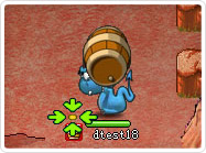 第一步,举桶和扔桶。游戏开始以后地图上会摆放很多油桶,角色经过桶上面,他会自动举起,把角色的方向面向要投掷的方向后,按空格键再松开,桶便会扔出。 游戏开始以后地图上会摆放很多油桶,角色经过桶上面,他会自动举起,根据角色可以举起1~5个桶,而一开始只能举起1~2个桶(不同角色能举起桶的数量会不同)。