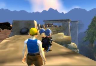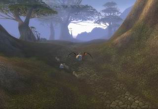 清晨,兰迪斯还在甜甜的睡着,我不忍心打搅他,于是背着他行走了一段路,一直到飞行员那里,跟他们讨价还价以后,最后以比较便宜的价格租借了一头鹰狮,我们直接飞到了洛克莫丹,然后带他跑到了水坝那里。