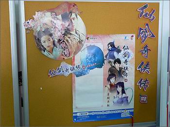 也许是运气太好,也许是缘分所至。我们无意中在寰宇之星公司发现了《仙剑奇侠传四》的首张海报。据工作人员介绍,这张海报是昨天刚刚从制作单位发过来的,目前尚属第一版的海报。随后,工作人员向朱镜橦介绍了《仙剑奇侠传四》海报上的四个人物。