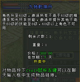 吉祥礼包:10级玩家可以打开!《封神榜国际版》将在公测期间开放在线送经验活动,玩家在线就可随时自动获得经验,所以不到半个小时,玩家就可以轻松升到10级,打开礼包。内含蓝色坐骑和职业绿装,同时玩家还有机会抽取20级腾雾坐骑和价值300元的九转乾坤丹哦!大家可不要小瞧这个小丸子,“九转乾坤丹”可以使玩家直接升到60级,同时学习所有60级以下技能,爽的很哦!