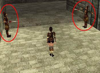 每次走进奉天城都会遇见把守城门的守卫甲和守卫乙,然而这两天一旦看见我们的测试员经过,他们都会立即不断的双手平举再放下再平举、脸带微笑的对我们行注目礼。此问题却有两种解释;一解:这是游戏策划的最人性化设计,让门卫向玩家行礼。二嘛,只能理解为这两个门卫有做体操的习惯了……