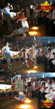 火热的拍卖结束以后,玩家的才艺表演纷纷登台亮相,这时充分展现出了武汉玩家特有的直爽热情的性格。首先登场的是来自外滩夜色服务器四位酷BOY的劲爆街舞表演!不时引来现场观众的阵阵尖叫,经了解他们四位是武汉高校的街舞社团成员,热爱天龙和街舞是他们的共同爱好,想借本次活动认识更多的爱玩天龙的玩家。