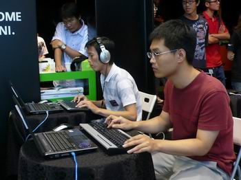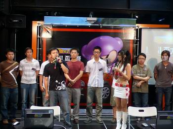 许多玩家拉拉队都到场助阵,场面相当热闹。像玩家“日语达人”就在女朋友一家人努力加油下奋勇作战,抢进前八强,原来张姓女朋友的爸爸也是《跑跑卡丁车》的爱好者,会跟“日语达人”一起玩,“日语达人”三不五时还会买些《跑跑卡丁车》的虚拟道具送给张爸爸,让张爸爸好开心。