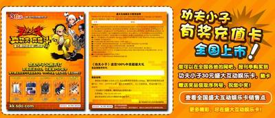 功夫小子有奖充值卡全国上市