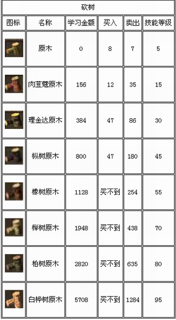 最开始的时候只能砍到原木并加工出原木木材,砍到最后,随着能砍的树越来越多,你挣的钱也就越来越多喽!游戏中,你可以把你做出来的木材卖给玩家也可以卖给NPC,不过为了防止你垄断NPC也会出售低级的木材~也就是说,你只有把工作技能练到55级以上,可以做更好的木材才能挣更多的钱!