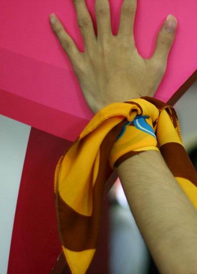 除了印有QQ三国产品logo和标志性图案的《QQ三国》Tshirt,现场发放的周边还有QQ三国主题头巾,丝质的头巾可以扎在头上也可以套在脖子上还可以系在手臂上,一时间一个个扎着QQ三国头巾的三国版“加勒比海盗”惊现Chinajoy。