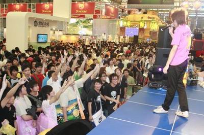 chinaJoy腾讯展台上,展开了一场别开生面的游戏高手风云对决。有兴趣有实力的观众可以有机会到台上来,进行现场PK。此间,QQ堂、QQ音速、3D桌球等游戏高手,纷纷来到大屏幕前,给现场观众表演了一场震撼人心的游戏秀。