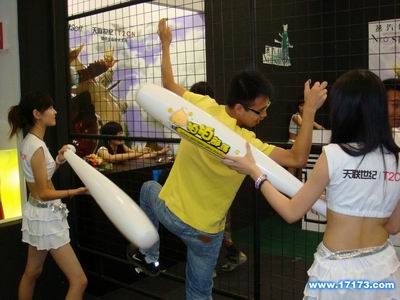 天联展台的《拍拍部落》MM,别看单薄襟弱,玩起来却丝毫不饶人,HOHO。