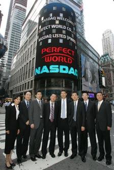 完美时空高管团队在纳斯达克市场外合影