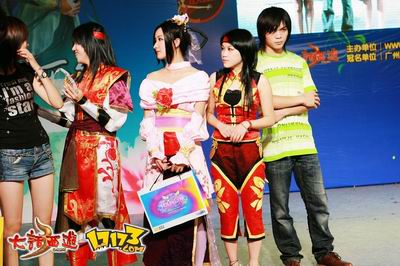除了精彩绝伦的COS表演把现场气氛一次次推向高潮,游戏互动、“姐姐妹妹‘战’起来游戏试玩”等好玩有趣的环节也让现场观众连连发出兴奋的尖叫声。“姐姐妹妹‘战’起来游戏试玩”项目是指每个女性玩家邀请一名闺中密友做为搭档,组成双人战队后选择一款2人均喜爱的游戏进行试玩,闯关成功后可以获得由该游戏提供的精美奖品。该环节参与的游戏包括目前非常火爆的《天龙八部》和《大话西游3》,另外还有《劲舞世界》、《炮炮火枪手》、《战火》和《疯狂赛车》。作为“17173嘉年华”的新增环节,“姐姐妹妹‘战’起来游戏试玩”吸引了大量玩家前来试玩。