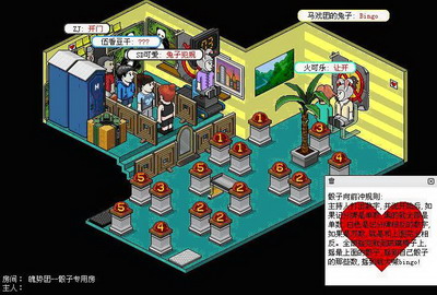 在哈宝里头,骰子机常常被用作游戏的主角。“骰子向前冲”就是一款由一些热爱游戏开发的哈宝用户所设计的一款别致的休闲小游戏。它属于动作与运气相结合的一类新型的哈宝游戏,它的比赛场地并不复杂,主要由黑白双方对阵,每人负责自己路上的数枚骰子。而终点位置的是一张玻璃椅子,那上面的一个骰子,正是兵家必争之地。游戏规则也相当简单,当主持人一声令下,双方即可马上行动,黑白双方必须按照主持人之前在记分牌上的数字来摇动面前的骰子。如果记分牌上是单数,黑垫子的必须将所有骰子摇成单数,而白垫子的则相反;若记分牌上是双数,则由白垫子的将所有骰子摇成双数,黑垫子的行动则相反。一直到游戏最后,看哪一方能最先占领椅子前的最终的骰子,并喊出“bingo”时,即为胜利方。如过你自认身手敏捷,而且运气过人,相信“骰子向前冲”这款小游戏会是你不错的休闲选择!